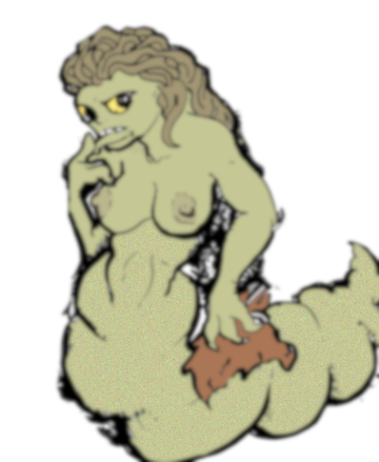 Maggot nagas are terrible beings of chaos, loathsome half-maggot creatures with human female upper torsos. They have a dark sense of humor and middling intelligence but are terribly cunning. They love feasting on corpses. Maggot nagas can near flawlessly mimic the voices of those they have recently feasted upon, an ability they use to make much mischief when they can.
