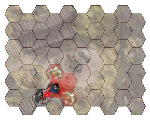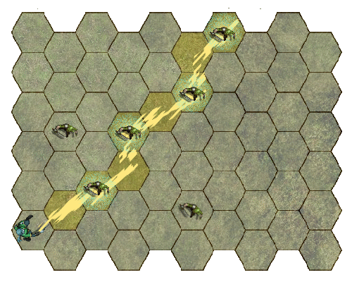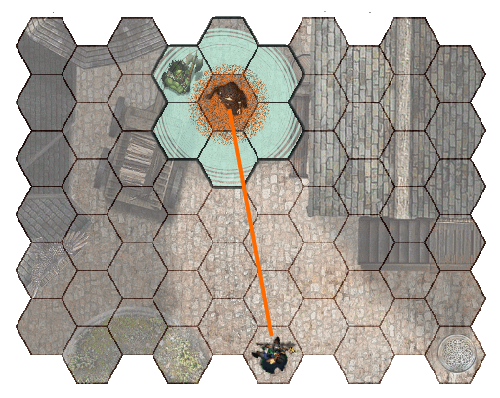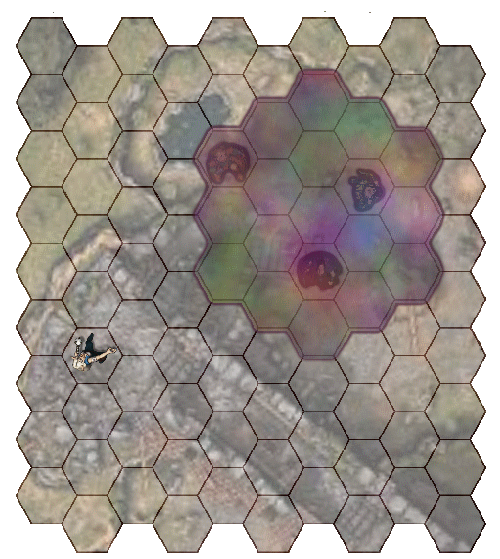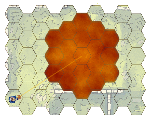 Billowing green gas bursts out in a 15-foot diameter circle (7 hexes), centered on any point of the sorcerer’s choosing within range. The cloud will move around corners to occupy 7 hexes. The cloud lasts for 30 seconds or until it is dispelled by a strong wind. Its area is heavily obscured, similar to a fog of war. Any creature that moves into the cloud or starts its turn there must make a Resilience save (TM:15). Creatures take 2d6 acid damage on a failed save, and half as much on a successful one. |